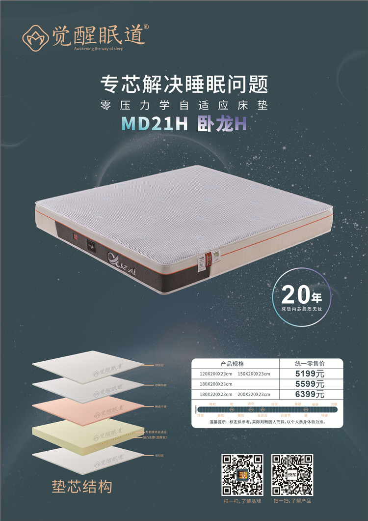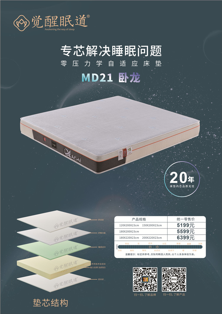 MD21卧龙 厚度:23cm 睡感:适中70% 指导价:5599.00元
