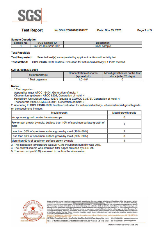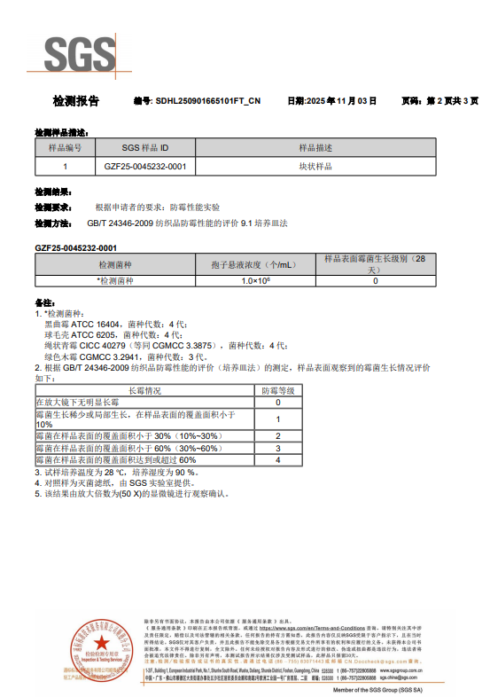 垫芯材料防霉检测报告
